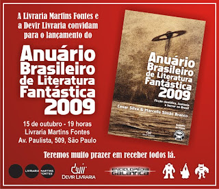 Lançamento do Livro "Anuário Brasileiro de Literatura Fantástica 2009" O evento acontece no dia 15 de outubro, sexta feira, a partir das 19 horas, na Livraria Martins Fontes, na Av. Paulista 509, São Paulo.